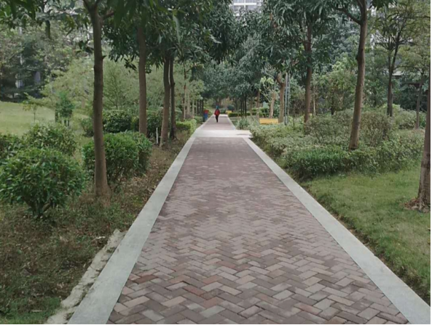 园区小径硬化处理,设计边沟,沿园区四周修建健身步道,满足居民多样化健身需求。